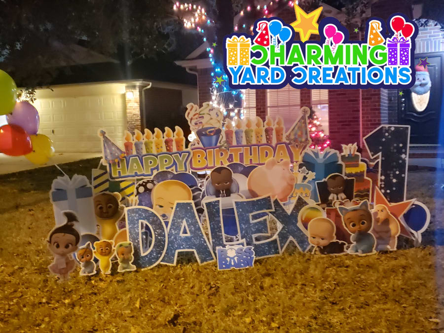 The Boss Baby Yard Card Greeting will make a statement in your yard. Charming Yard Creations will bring out that delightfully character in your yard greeting.