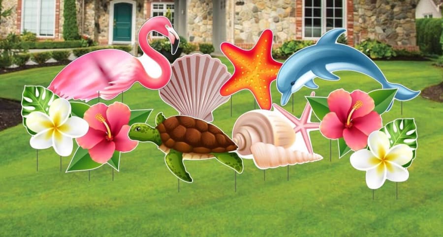 Ready to create unforgettable memories? Choose the Tropical Flair Yard Greeting and let the good vibes roll!