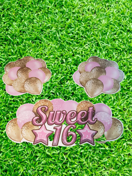 Sweet Sixteen Yard Greeting comes in LARGE flash card. We will add stars, balloons, gift box, hearts ETC. Greetings are also 25 characters.