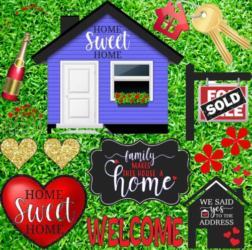 Home Sweet Home yard card greeting comes with stars, balloons, gift box, hearts ETC. Greetings are also 20 characters.