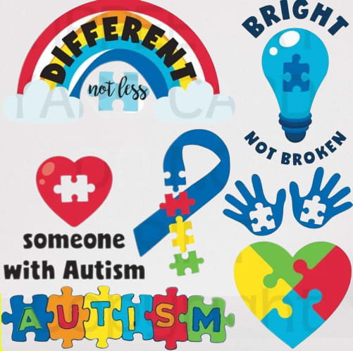 Autism Awareness yard card greeting comes with stars, balloons, gift box, hearts ETC.