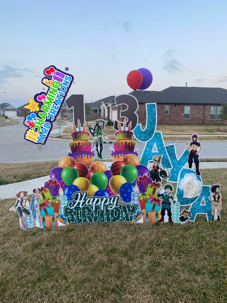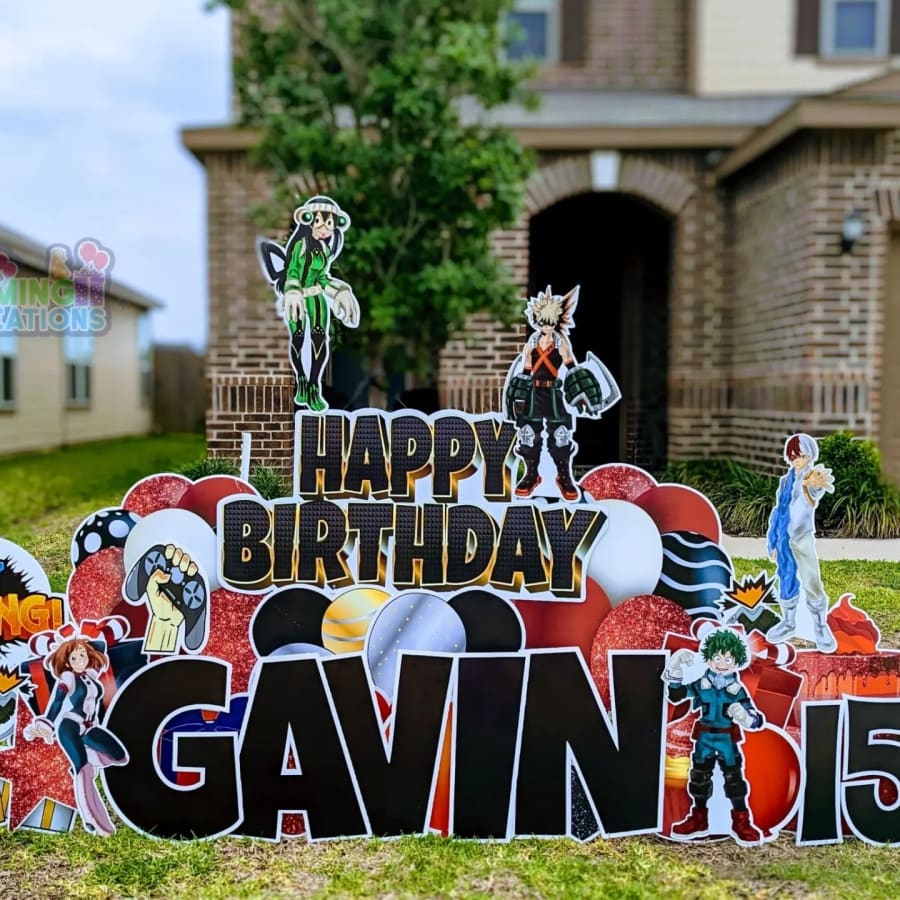 Anime Yard Greeting comes with happy birthday, name, age stars, balloons, gift box, hearts ETC.