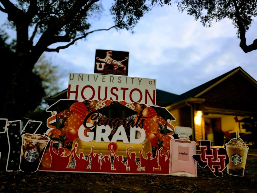 Houston Yard Card Greeting, Shimmer Wall, Balloon Decor, Backdrop and Flower Wall