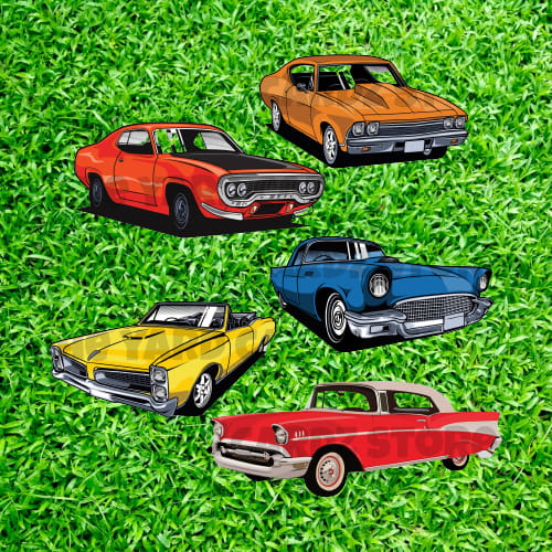 Classic Cars yard greeting comes will greeting of your choice,stars,balloons, gift box, hearts ETC.