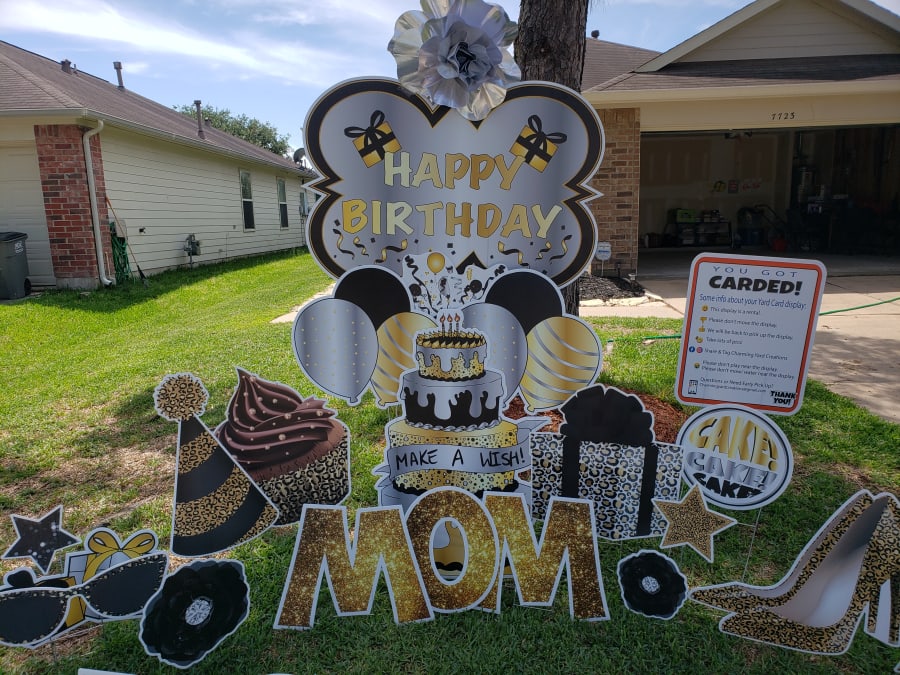 Leopard Yard greeting set comes with greeting of your choice. We will add stars, balloons, gift box, hearts ETC.