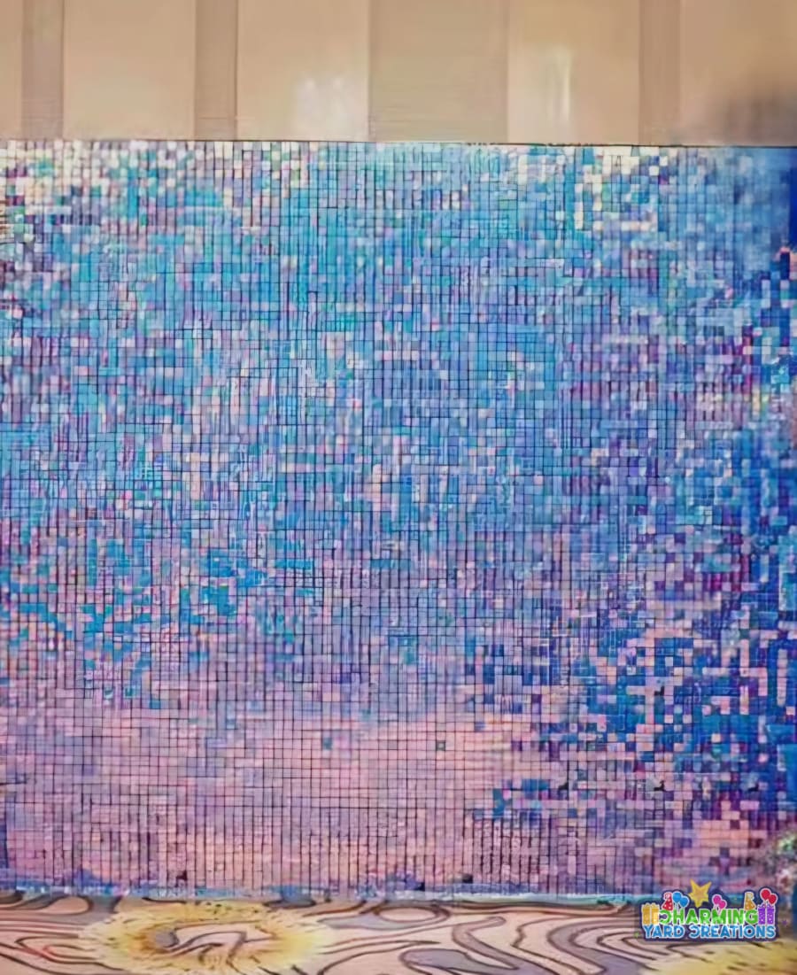 Our Rainbow-Blue Shimmer Wall is crafted with meticulous attention to detail, featuring a mesmerizing mix of colors that seamlessly blend to create a vibrant visual effect. The shimmering panels reflect light beautifully, adding a touch of magic and glamour to any setting. With its eye-catching design, this wall will not only enhance your venue but also engage your guests, setting the stage for a memorable event.